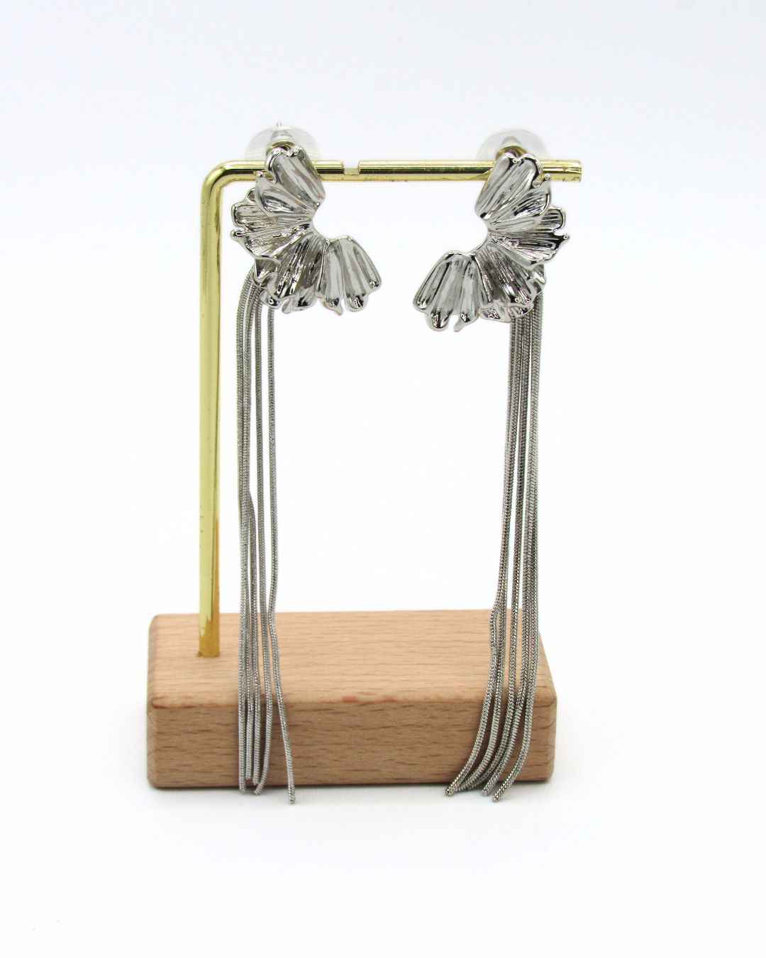 Aretes Largo Abanicos Dorados elaborados a mano en bronce con baño de plata ley 925.