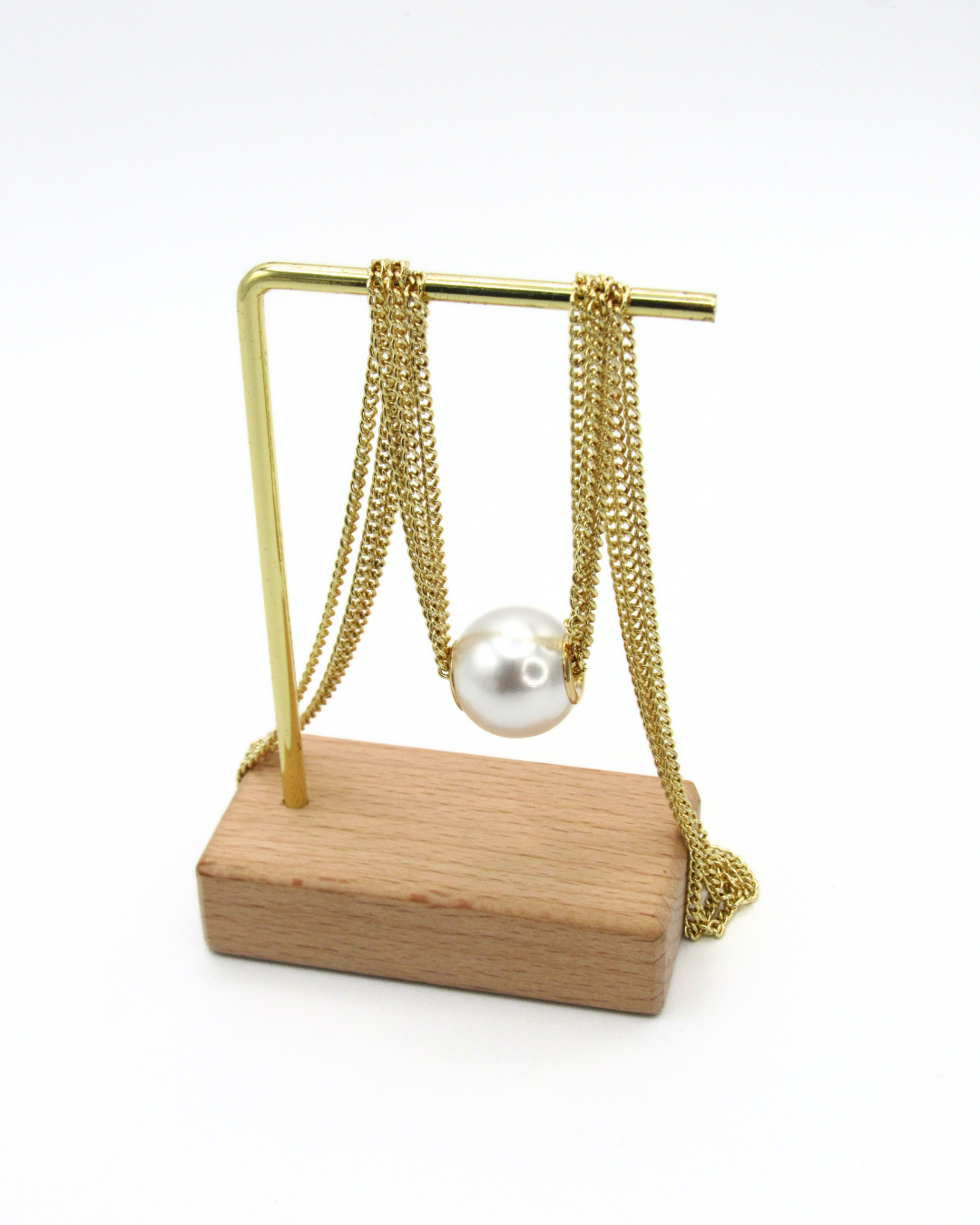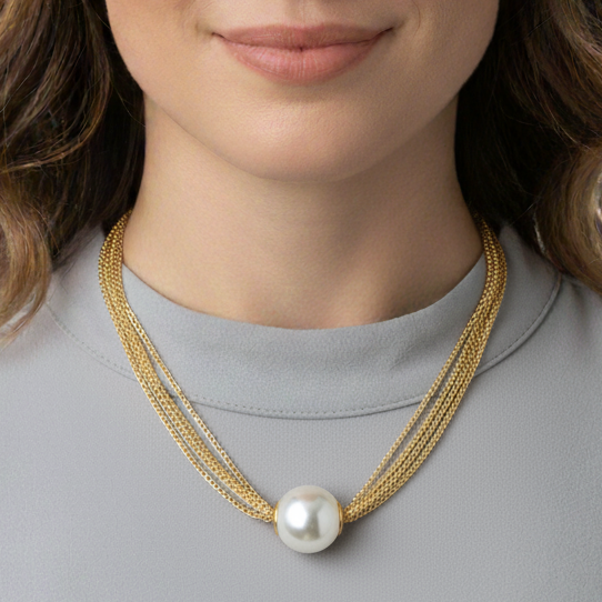 Collar Cadenas Maxi Perla Dorado elaborados a mano en bronce con baño de oro 24k