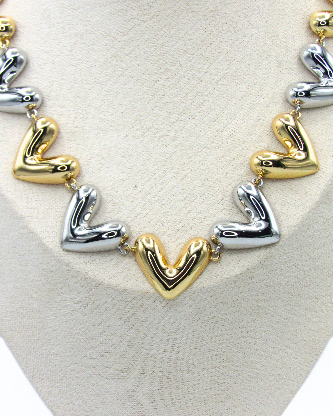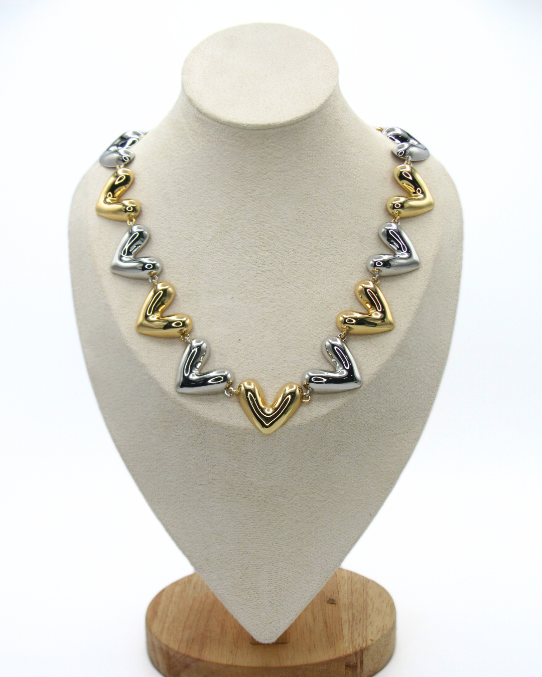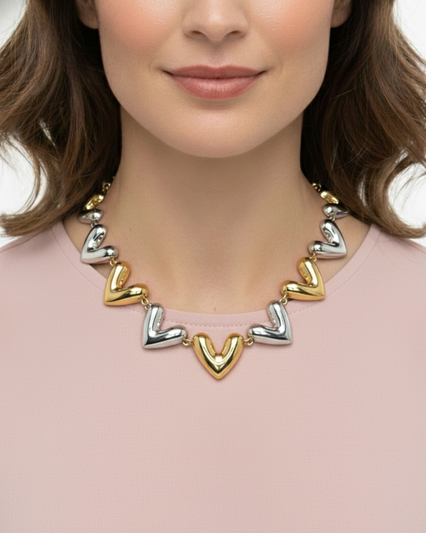 Collar Eslabones De Corazón Dorado Y Plateado ajustable elaborados a mano en bronce con baño dorado