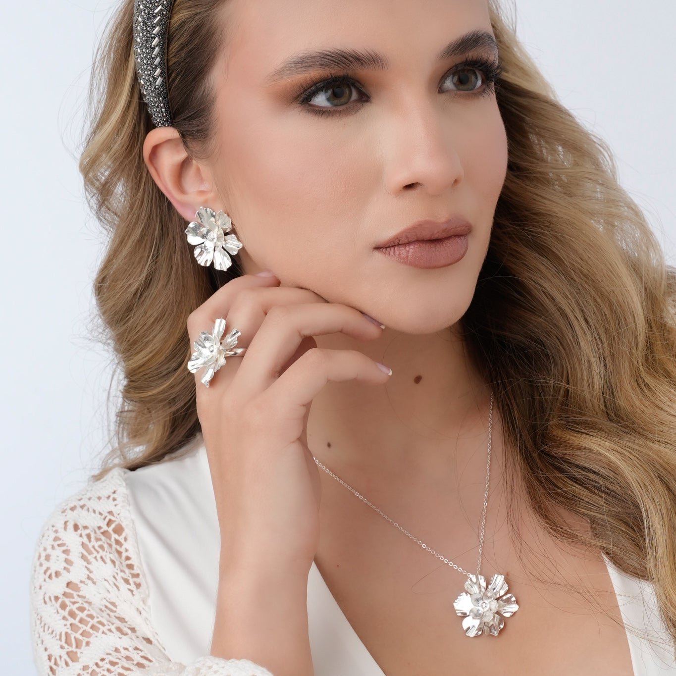Collar Flores Esencial Plateado elaborado a mano en bronce con baño de plata ley 925.