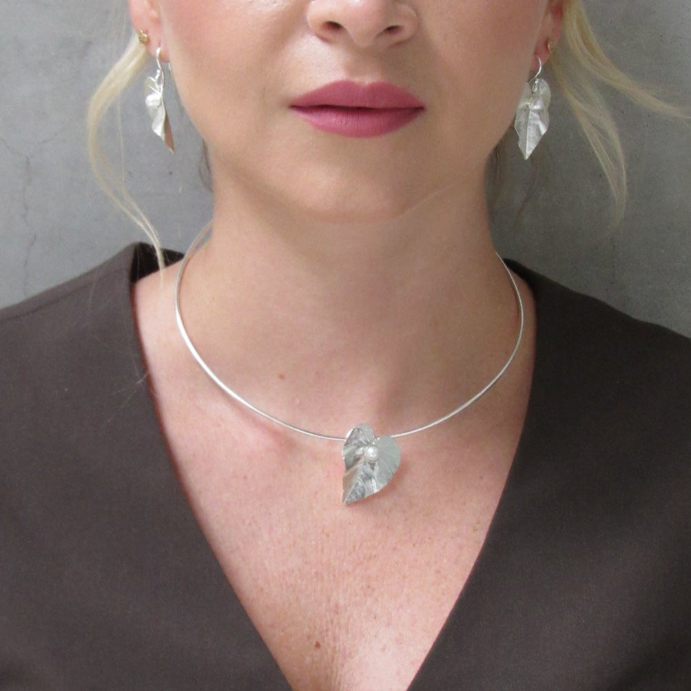 Collar Maxi Aro Dije Flor Perla Anturio Plateado elaborado a mano en bronce con baño de plata ley 925
