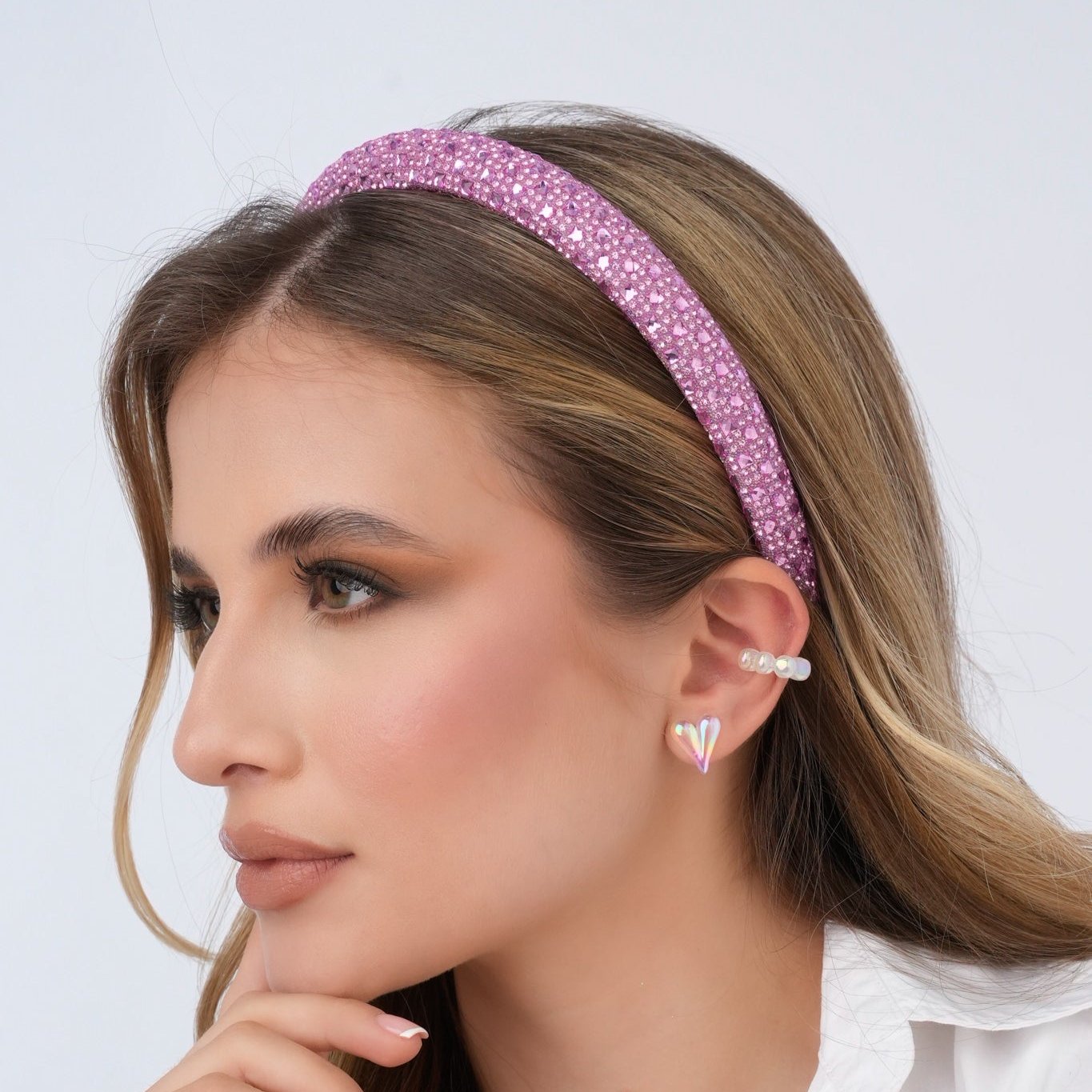 Diadema Cristales Violeta Elaborada a mano Con piedras y perlas artificiales