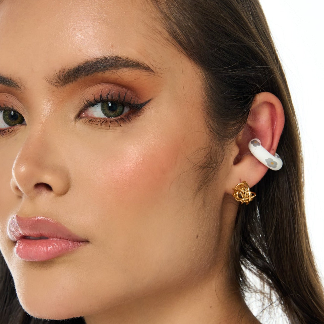 Earcuff Arcilla Blanco Betiado Grís Elaborado a mano en arcilla.