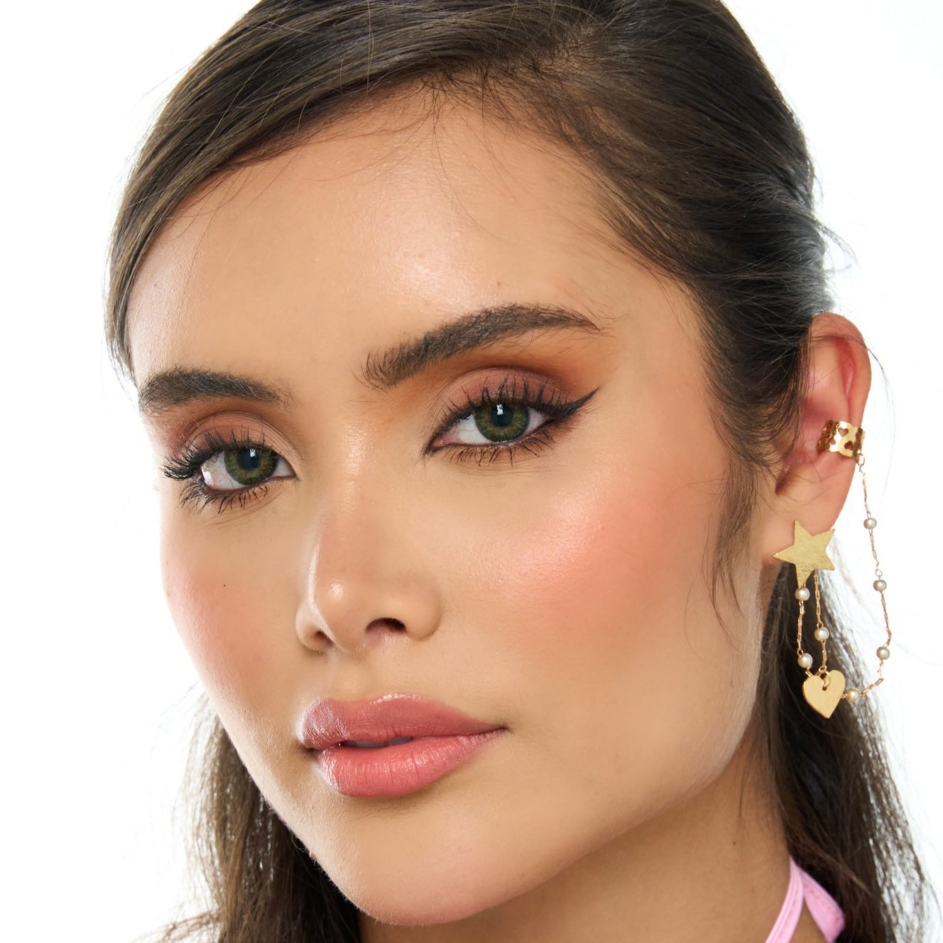 Earcuff Y Topo Estrellas Dorado elaborados a mano en bronce con baño de oro de 24k.