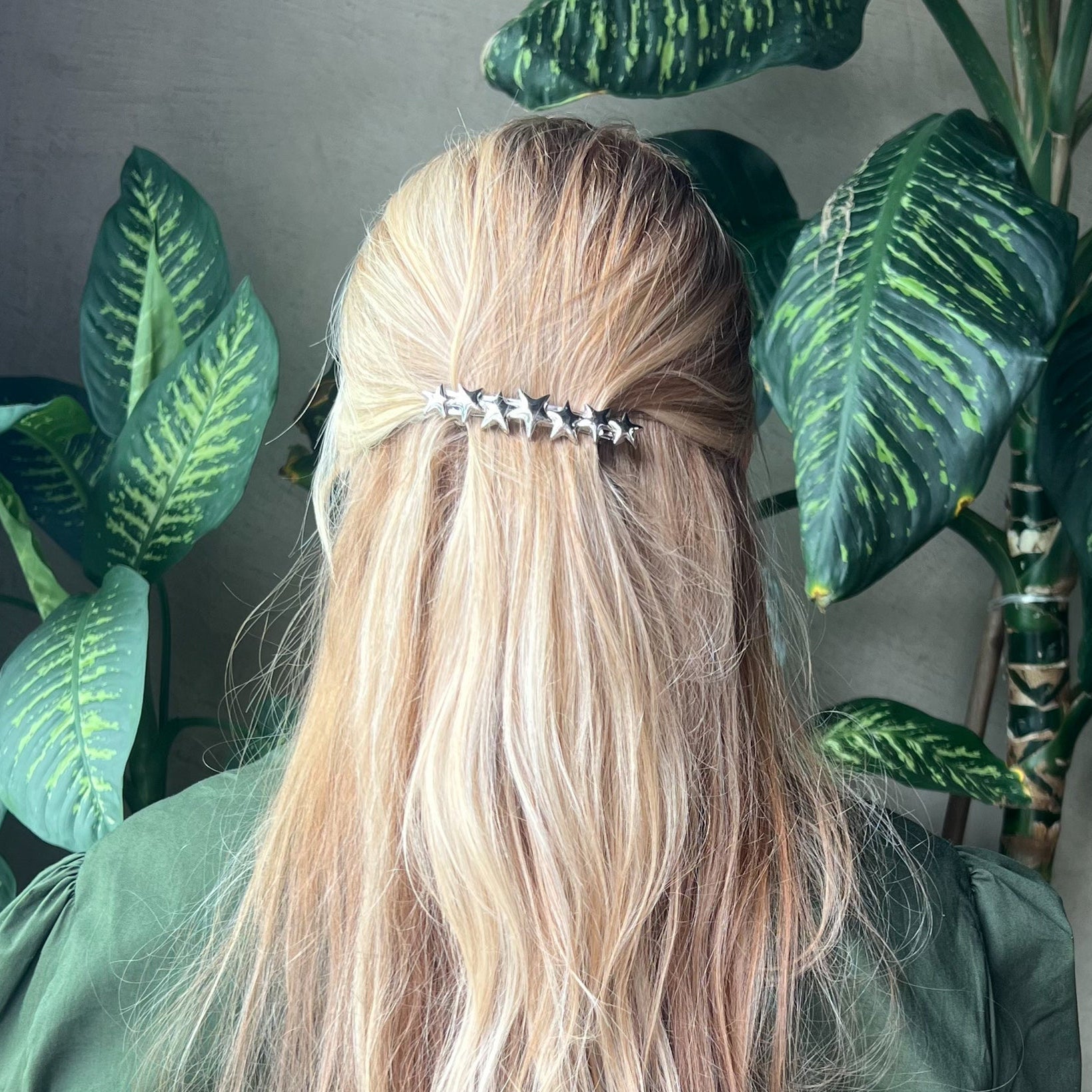 Pinza Estrellas Plateadas Elaborada a mano en bronce Con baño plateado.